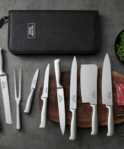 This Ross Henery Professional Eclipse Premium 9-piece knife set comes in a heavy duty zip up storage case which is ideal if you are traveling with the knives & especially useful for catering students.