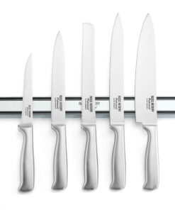 This Premium Ross Henery Professional Eclipse 5-piece knife set is designed for versatility and efficiency, complete with heavy duty magnetic metal hanging bar for secure wall mounting, this set is suitable for both home kitchens and professional workspaces. Keep your knives organised, easily accessible, and safely displayed whether you’re cooking at home or working in a busy kitchen environment.
