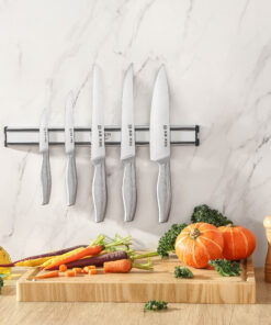 This Premium Ross Henery Japanese Style Eclipse 5-piece knife set is designed for versatility and efficiency, complete with heavy duty magnetic metal hanging bar for secure wall mounting, this set is suitable for both home kitchens and professional workspaces. Keep your knives organised, easily accessible, and safely displayed whether you’re cooking at home or working in a busy kitchen environment.